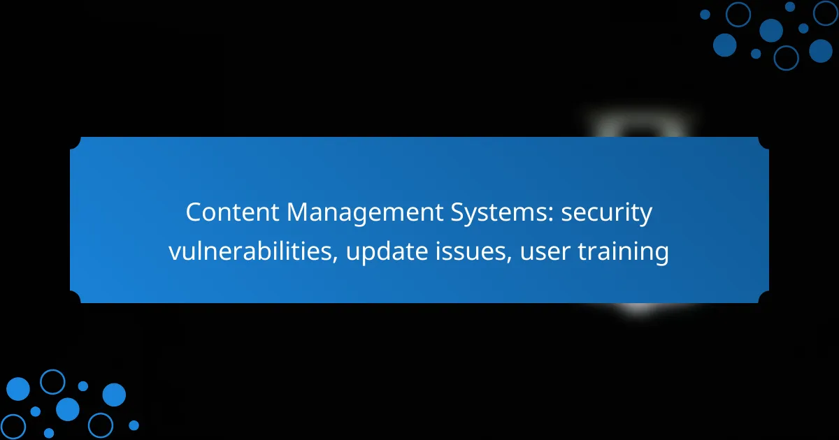Content Management Systems (CMS) are popular tools for managing digital content, but they often encounter security vulnerabilities due to outdated software, weak passwords, and insufficient user training. Addressing these issues requires a proactive approach that includes regular updates and comprehensive training for users to enhance security and functionality. By prioritizing these aspects, organizations can significantly reduce the risk of unauthorized access and data breaches.