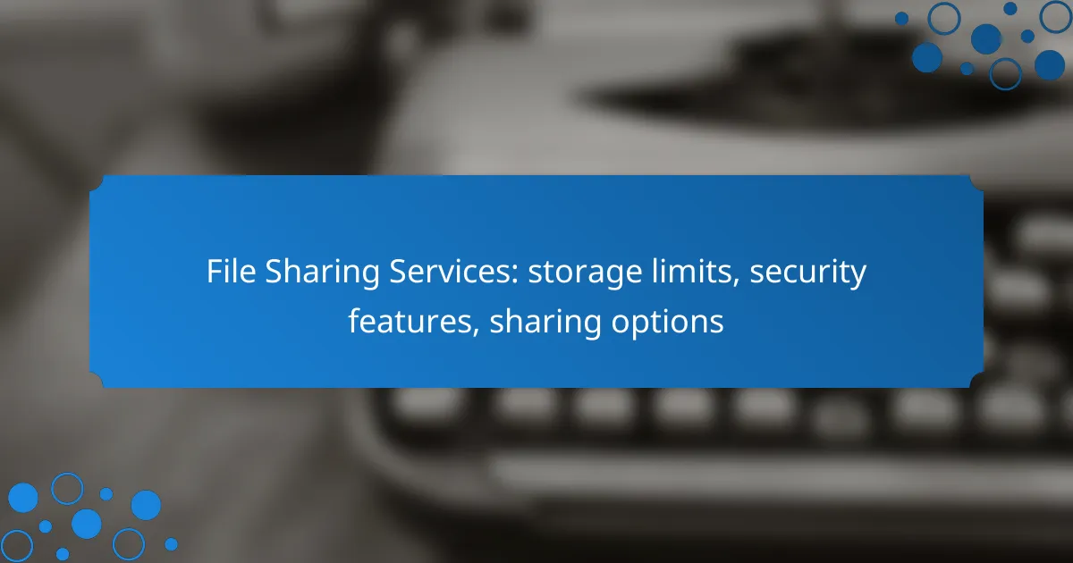 File sharing services provide essential tools for users to store, share, and collaborate on documents seamlessly. With varying storage limits, security features, and sharing options, it’s important to evaluate each service’s offerings to find the best fit for your needs. Popular platforms like Dropbox, Google Drive, and OneDrive stand out for their user-friendly interfaces and robust security measures.